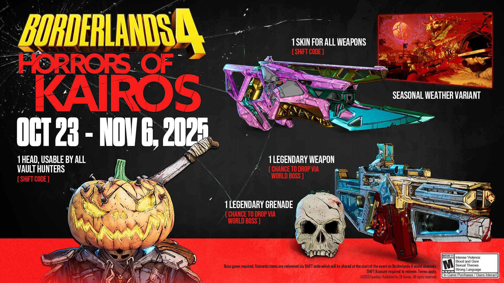 O evento “Horrors of Kairos” é gratuito e está programado para oferecer uma série de novidades no universo de Borderlands. Os desenvolvedores estão focados em criar uma experiência divertida, cheia de quests temáticas que vão deixar os jogadores bem imersos no clima de Halloween. As armas lendárias serão um grande atrativo, permitindo que os players melhorem seu desempenho nas batalhas contra inimigos.